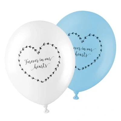 50 'FOREVER IN OUR HEARTS' FUNERAL BALLOONS - 25 of each colour. Perfect for a funeral, memorial, remembrance service, celebration of life, wake, or for marking the anniversary of the passing of a loved one. PERFECT FOR DECORATING A FUNERAL VENUE - Featuring the message 'Forever In Our Hearts' inside a floral heart wreath, these balloons are beautiful way to add colour to a venue. Tie them to chairs, place in bunches around a memory table, or hand out to guests as funeral favours. PROFESSIONAL QUALITY BALLOONS, MADE IN UK - Our high quality 12 inch balloons are made in from biodegradable latex rubber. Always dispose of balloons responsibly. For adult use only. SUITABLE FOR AIR OR HELIUM INFLATION - Our balloons are suitable for air or helium inflation. For balloons to float they will need to be inflated with helium gas. EXCLUSIVE TO ANGEL & DOVE - creators of contemporary funeral goods and sympathy gifts., Manufacturer: Angel & Dove