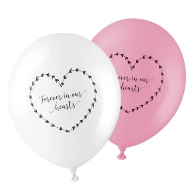 ANGEL & DOVE Pack of 50 Funeral Balloons 'Forever In Our Hearts' Biodegradable (White Pink)