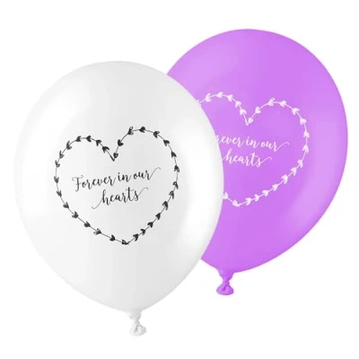 50 'FOREVER IN OUR HEARTS' FUNERAL BALLOONS - 25 of each colour. Perfect for a funeral, memorial, remembrance service, celebration of life, wake, or for marking the anniversary of the passing of a loved one. PERFECT FOR DECORATING A FUNERAL VENUE - Featuring the message 'Forever In Our Hearts' inside a floral heart wreath, these balloons are beautiful way to add colour to a venue. Tie them to chairs, place in bunches around a memory table, or hand out to guests as funeral favours. PROFESSIONAL QUALITY BALLOONS, MADE IN UK - Our high quality 12 inch balloons are made in from biodegradable latex rubber. Always dispose of balloons responsibly. For adult use only. SUITABLE FOR AIR OR HELIUM INFLATION - Our balloons are suitable for air or helium inflation. For balloons to float they will need to be inflated with helium gas. EXCLUSIVE TO ANGEL & DOVE - creators of contemporary funeral goods and sympathy gifts., Manufacturer: Angel & Dove