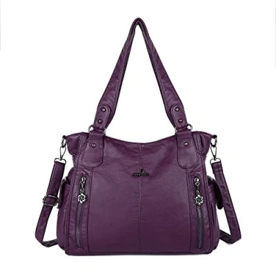 Angel Kiss Handbags for Womens Top Handle Hobo Purse Roomy Casual Shoulder Bagn PU Tote Satchel purple Size: Large