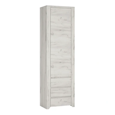 Product details Tall Narrow One Door 3 Drawer Narrow Cupboard. This beautifull bedroom collection is contemporay and stylish and suitable for all age groups, finished in a modern hard wearing white crafted Oak melamine. This tall narrow cabinet has lots of storage capacity with interior shelving and 3 handy drawers. Laminated board (resistant to damage and scratches, moisture and high temperature). Decorative gently rounded MDF mouldings. Easy self assembly. Easy glide metal drawer runners. Product Specifications Dimensions: 190.5cm (H) x 56cm (W) x 40cm (D) Finish: White Craft Oak Range: Angel Total weight: 50kg Shop this and other quality bedroom furniture at Bed Kings. Explore expertly crafted bedroom furniture designed for style, comfort and everyday living, with all orders benefiting from free delivery.