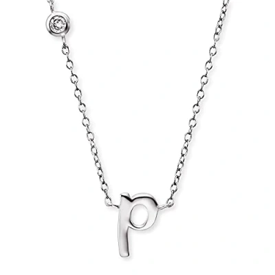 Angel Whisperer ERN INITIAL P Pendant with Chain Letter Rhodium Plated