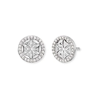 Engelsrufer ERE-LILLIFL-ZI-ST Ear studs flower of life with 49 white synth. zirc. 925 Sterling silver rhodium plated 10mm Stud earring