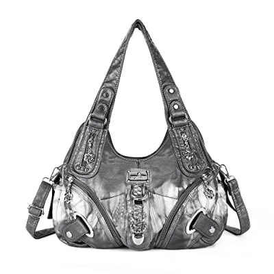 Angelkiss Hobo Purses and handbags for Women Satchel Handbag Large Daily Shoulder Bags, Smoky Grey, L