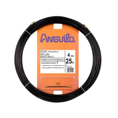 It is the material with the greatest memory effect, therefore the one with the most friction points. TORSION FORCE | The material has an original curved shape and its spiral behavior is accentuated. Torsion on one side achieves a slight turning movement at the other end PUSH FORCE | They are monofilaments and is the material with the lowest thrust force. In distances greater than 20 meters its performance is critical. Faced with a major obstacle will meander occupying the entire tube. AGILIZE YOUR WORK | It is the ideal complement to the work of the installer facilitating the introduction and direction of electrical wiring. For both home and professional use. ACCESSORIES INCLUDED: flexible guide head standard Ø6mm M5 and standard hook ring Ø6mm M5, Manufacturer: Anguila