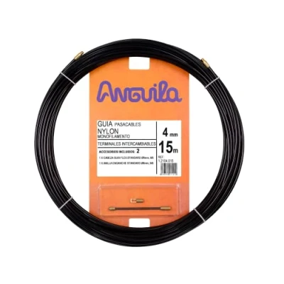 It is the material with the highest memory effect, therefore the one with the most points of friction. TORQUE FORCE | The material has an original curved shape and its spiral behavior is accentuated. Twisting on one side achieves a slight turning motion on the other end PUSH FORCE | They are monofilaments and is the material with the lowest force of pushing. At distances greater than 20 meters its performance is critical. Facing a major obstacle will meander occupying the entire tube. SPEED UP YOUR WORK | It is the ideal complement to the work of the installer facilitating the introduction and direction of electrical wiring. Suitable for both professional and home use. ACCESSORIES INCLUDED | standard flexible guide head Ø6mm M5 and standard hook ring Ø6mm M5, Manufacturer: ANGUILA