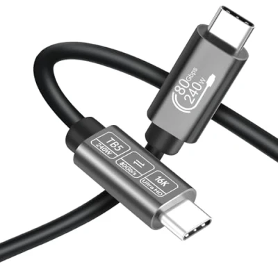 𝙀𝙛𝙛𝙤𝙧𝙩𝙡𝙚𝙨𝙨 𝘿𝙖𝙩𝙖 𝙎𝙝𝙖𝙧𝙞𝙣𝙜 𝙬𝙞𝙩𝙝 𝟴𝟬 𝙂𝙗𝙥𝙨 𝙏𝙧𝙖𝙣𝙨𝙢𝙞𝙨𝙨𝙞𝙤𝙣; With a remarkable 80 Gbps transmission rate, effortlessly transfer vast amounts of data, high-resolution videos, and high-quality audio 𝙑𝙞𝙨𝙪𝙖𝙡 𝙀𝙭𝙘𝙚𝙡𝙡𝙚𝙣𝙘𝙚; Angusplay Thunderbolt 5 Cable Delight in breathtaking clarity with support for Single 16K , Dual 8K or triple 4K @144Hz displays, enhancing your gaming, entertainment, or creative workflow 𝟮𝟰𝟬𝙒 𝙇𝙞𝙜𝙝𝙩𝙣𝙞𝙣𝙜-𝙁𝙖𝙨𝙩 𝘾𝙝𝙖𝙧𝙜𝙞𝙣𝙜; This USB C cable supports lightning-fast charging speeds of up to 240W (48V 5A), ensuring your Type C devices are powered up in no time 𝘽𝙪𝙞𝙡𝙩 𝙩𝙤 𝙇𝙖𝙨𝙩; The Angusplay USB4 Thunderbolt Cable is both sleek and rugged. Engineered for durability, this USB 4 cable's heavy-duty construction with superior materials guarantees extended longevity even with frequent plugging 𝙑𝙚𝙧𝙨𝙖𝙩𝙞𝙡𝙚 𝘾𝙤𝙢𝙥𝙖𝙩𝙞𝙗𝙞𝙡𝙞𝙩𝙮: This Type C USB cable is a one-size-fits-all solution for numerous Type C devices. It seamlessly connects laptops, PCs, speakers, iPhones, iPads, MacBooks, Galaxy devices, and docking stations, streamlining connectivity with power, connection, and streaming capabilities