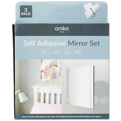 3PK SELF-ADHESIVE SQUARE MIRRORS – This 3 pack of square mirrors are ideal to enhance any room in your home including entryways, living rooms, bedrooms, bathrooms and more. VERSATILE AND FUNCTIONAL – Use these mirrors in any room in your house to instantly reflect the light to make a room appear brighter and bigger. Each square mirror measures at 15cm so they are compact enough to fit in small spaces while ensuring you can see yourself clearly. EASY TO INSTALL – These self-adhesive mirrors could not be easier to install, simply apply to any clean, dry surface and watch how they transform your space. SLEEK AND MODERN – The sleek and modern mirror design fits in with a wide variety of interiors so you can feel confident that they will nicely complement your space. Place them individually or as a set of 3 for an instant home improvement. ANIKA – Anika is the leading manufacturer of homeware, bathroom and kitchen essentials. View the Anika store on Amazon to view the whole range today.