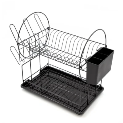 2 TIER DISH DRAINER – Keep your kitchen clean, dry, and organised with this two-tier dish drainer. The sleek black plastic drip tray efficiently collects excess water, preventing spills and protecting your sink area, draining board, and worktop from water stains and damage. HYGIENIC AND EASY TO CLEAN – Designed for effortless maintenance, the removable plastic drip tray and detachable cutlery holder allow for quick rinsing and cleaning. This helps prevent the build-up of bacteria and grime, ensuring a fresh and sanitary drying space. DURABLE FOR DAILY USE – Made from sturdy iron wire with a high-quality powder coating, this dish drainer is built to withstand daily use while resisting rust and corrosion. Its robust construction ensures long-lasting reliability in any kitchen. SPACIOUS YET COMPACT DESIGN – The well-structured two-tier layout maximises drying capacity without taking up too much space. It measures at 35 x 36 x 23.5cm. Reinforced with varying wire diameters, it provides excellent support for plates, bowls, mugs, and utensils—ideal for both small and busy kitchens. ANIKA - Anika is the leading manufacturer of homeware, bathroom and kitchen essentials. View the Anika store on Amazon to view the whole range today.