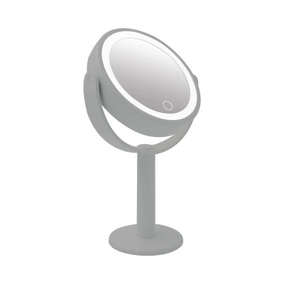 The Anika Beauty Mirror Round LED Grey features adjustable LED lighting, touch controls, 360-degree rotation, and dual power options for versatile use. Its sleek grey design adds a modern touch to any space.