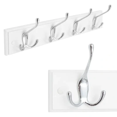 WALL-MOUNTED COAT HOOK – This 47 x 7cm coat hook rack features four sturdy, three-pronged chrome-effect hooks. Coming in a white finish, this practical yet stylish coat hook rack complements any room, whatever your style of home décor. STURDY AND DURABLE - Designed to handle daily use, each hook can hold up to 2.5 kg, making it ideal for hanging coats, bags, scarves, and more. The heavy-duty construction ensures long-lasting durability. Constructed from MDF, the product is crafted from wood sourced from well-managed, sustainable forests. VERSATILE DESIGN FOR ANY INTERIOR – The coat hook rack is thoughtfully designed to complement various decor styles. Its timeless aesthetic is perfectly suited for hallways, bedrooms, bathrooms, and entryways, adding functionality and style to any space. QUICK AND EASY INSTALLATION – The coat hook rack comes pre-assembled, saving you time and effort. All necessary fixings, including screws and wall anchors, are included, allowing for quick and hassle-free installation. Simply follow the straightforward instructions, and you’ll have your wall-mounted coat rack ready in minutes. ANIKA - Anika is the leading manufacturer of homeware, bathroom, and kitchen essentials. View the Anika store on Amazon to view the whole range today., Weight: 1.322773572 pounds, Manufacturer: The Benross Group