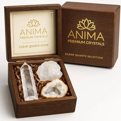 THE MASTER HEALER STONE – Known as the “Master Healer,” Clear Quartz is celebrated for its high vibration and its ability to amplify energy and intention. This premium set features three stunning variations: a polished tower, a raw stone, and a unique crystal cluster—each hand-selected for purity and energetic potency. PREMIUM WOODEN GIFT BOX – Every set comes nestled in a dark wooden keepsake box with natural shredded filler, creating a grounded and luxurious unboxing experience. Whether for yourself or a loved one, this elegant presentation makes it an ideal gift for spiritual women and crystal lovers. INCLUDES EXCLUSIVE INFO CARD – Learn how to get the most out of your crystals. Each box contains a beautifully designed card that outlines the unique uses and benefits of each Clear Quartz shape—perfect for beginners and experienced energy workers alike. VERSATILE ENERGY TOOL – Use the tower for focused intention and meditation, the raw stone to charge spaces or other crystals, and the cluster to amplify and cleanse the energy of a room. This set is the perfect ally for manifestation, clarity, and alignment. PART OF ANIMA'S PREMIUM COLLECTION – With over 50,000 happy customers, Anima is a trusted brand in spiritual tools. Our crystals are ethically sourced and hand-packed with care. Discover the beauty of authenticity, intention, and high-vibration living.