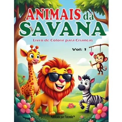 Animais da Savana Livro de Colorir para Crianças Volume 1: Páginas Divertidas e Fáceis Safari Pequenas