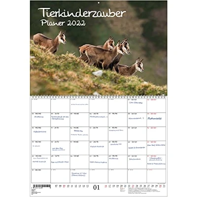 Animal Children's Magic Planner DIN A2 Unfolded Calendar for 2022 Baby Animals and Children Seelenzauber