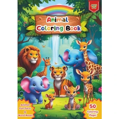 Animal Coloring Book: Interesting Fun Facts and Word Mazes; 50 Pages; Book suitable for Kids Aged 4 8