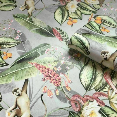 General description Belgravia Tropical Animal Garden Jungle Floral Palm Wallpaper features a vibrant burst of tropical foliage and animals in a variety of bright tones, set against a smooth grey background. This stunning design is ideal for full room coverage or as a striking feature wall. Technical specifications Roll Width: 0.53m Roll Length: 10m Pattern Repeat: 53cm Weight: 1.2kg Installation Paste the paper Offset match Peelable Washable Usage Perfect for large wall areas Ideal for creating a fabulous feature wall Other information Good lightfastness Always read and adhere to the manufacturer's labels for instructions Please check for defects before hanging wallpaper as returns cannot be accepted once the product has been used Order enough rolls to complete your job as batch numbers cannot be guaranteed on a subsequent purchase