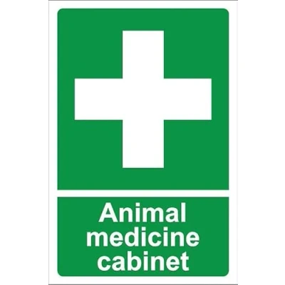 Animal medicine cabinet. 1mm flexible Plastic sign. Digitally printed for extra durability. Drill and screw in position or use double sided tape to mount onto suitable surface. All signs come with a 5-year warranty. All our signs are UV resistant meaning they will not fade in sunlight. Suitable for indoor & outdoor use.