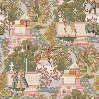 Animal Palace Indian Inspired Wallpaper with Giraffes, Lions, Elephants Perfect for Living Room, Bedroom, Feature Wall Decoration or DIY Projects Multi Coloured Holden 13760