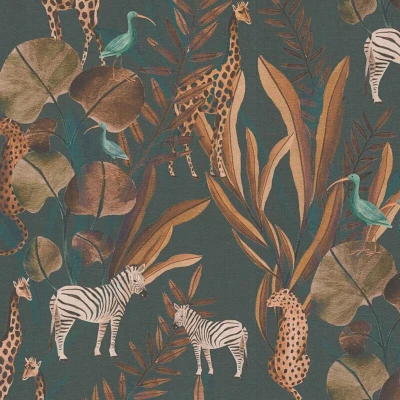 Animal pattern wallpaper wall Profhome 782182 hot embossed non woven smooth with exotic design matt anthracite black grey orange brown