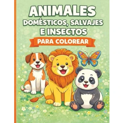 Animales Domésticos, Salvajes e Insectos para Colorear: Libro Colorear Infantil con 42 Dibujos Grandes y Fáciles Niños de 5 a 8 Años
