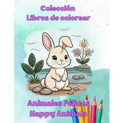 animales Felices para Colorear: Libro de colorear niños con tiernos y vocabulario en español e inglés Aprende diviértete ... escenas alegres (Libros Colorear)