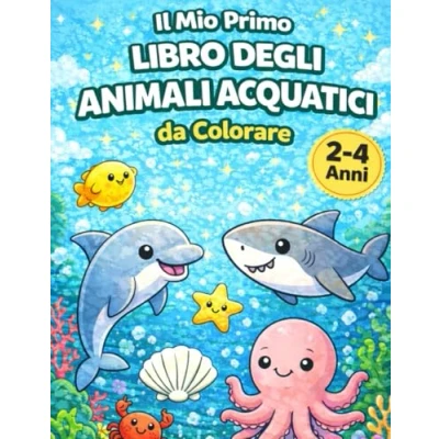 Animali Acquatici Il Mio Primo Libro da Colorare per Bambini 2 4 Anni: 12 Disegni Facili, Grandi e con Linee Spesse Piccole Mani