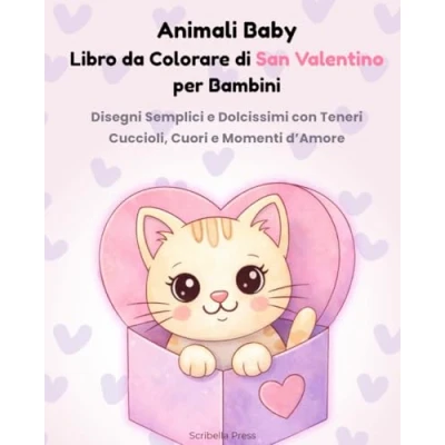 Animali Baby Libro da Colorare di San Valentino per Bambini: Disegni Semplici e Dolcissimi con Teneri Cuccioli, Cuori Momenti d’Amore