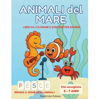 Animali del Mare: Libro da colorare e scrivere per bambini