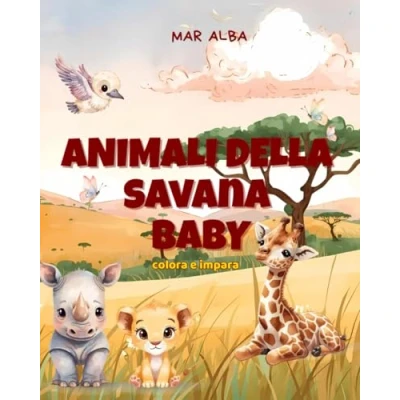 animali della savana baby: Libro da colorare facile bambini 3 6 anni Impara a conoscere gli con divertenti attività