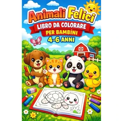 Animali Felici: Libro da colorare per bambini 4 6 anni disegni semplici e divertenti