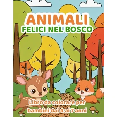 Animali felici nel bosco: Libro da colorare per bambini dai 4 ai 7 anni