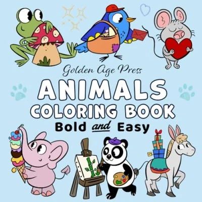 Animals Bold & Easy Coloring Book: Simple Large Print Big Designs for Adults, Kids Beginners