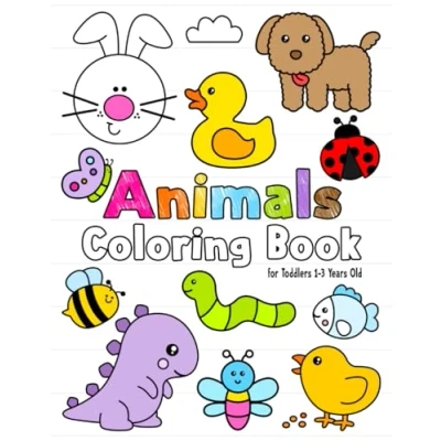 Animals Coloring Book for Toddlers 1 3 Years Old: Fun and Easy Kids 1+ With Duck, Chick, Hen, Rabbit, Sheep, Dog More! A Activity Preschool Kindergarten