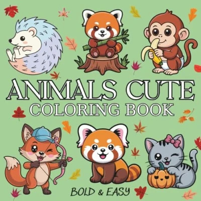 Animals Cute: Coloring Book For Adults & Kids, Simple and Big Designs Featuring Cute Many More (Bold Easy Coloring)
