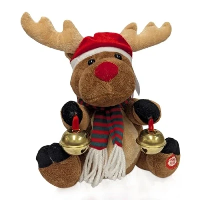 Animated Reindeer Toy Press to Play Plush Christmas with Sound and Movement Cuddly for Decorations Ideal Festive Displays & Secret Santa Gifts (17cm x 13cm 19cm)