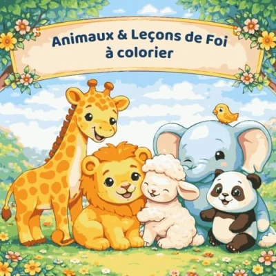 Animaux à colorier avec des versets bibliques pour enfants: 50 illustrations et de la Bible apprendre foi en s’amusant Dès 3 ans