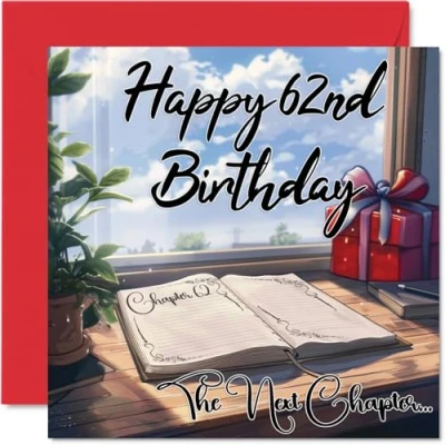 Anime 62nd Birthday Cards for Woman Men The Next Chapter Happy Card Dad Mum Grandad Nanny Grandma Gran Uncle Auntie Cousin, 145mm x Bday Greeting