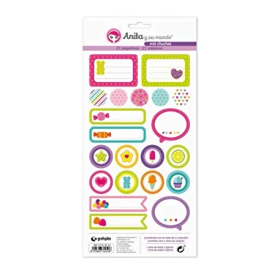 Anita and Su Mundo Collection My Chuches Stickers, 21 Designs Per Sheet, Paper, Multicoloured, 15 x 32 cm
