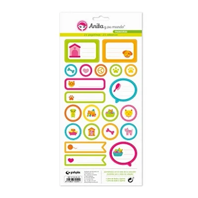 Anita and Su Mundo Collection Pets Stickers, 21 Designs Per Sheet, Paper, Multicoloured, 15 x 32 cm