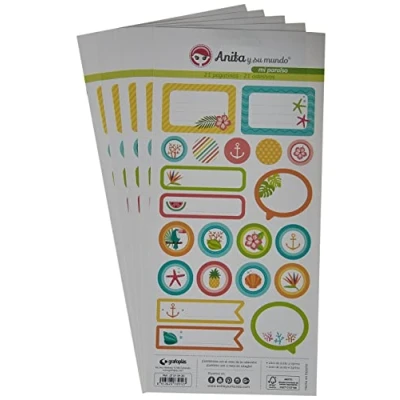 Pack of 5 sheets of 21 stickers Leaves have a weight of 225 g The stickers are acid and lignin free, perfect for keeping your photos The dimensions of each sheet are 15 x 32 cm. These stickers belong to Anita's MyParadise collection and their world scrapbooking.
