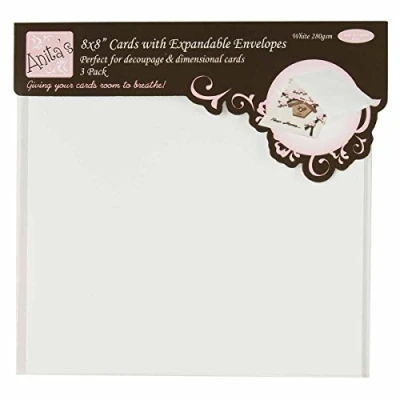 USE Great for your card-making projects, whatever you're wishing to say! Ideal for posting document, letter, card, book, which doesn't fit in a standard envelope and needs the expandable gusset BLANK Plain design means you can decorate and embellish the card and envelopes with colour, glitter, paint, markers and embellishments for a unique touch. Perfect for gift card and vouchers to IDEAL For use at home, in school, or for business use in office. Perfect packaging for postage of items with a dimensional layer such as handmade card, decoupage, book and more CONTENTS The pack contains 3 8x8 280gsm expandable card and postal wallet envelopes in white. Perfect for all your card making and crafting needs. Must-have supplies for craft collection ESSENTIAL Supplies needed to start in card and invite making. Blank card supplies are suitable for any occasion or event