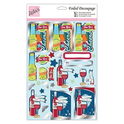 Anita's A4 Cheers Coloured Decoupage Sheet, Accessories Supplies for Craft, Paper Scrapbooking, Card Making, Origami, Ideal Adult Adds Textured Pattern To Craft Projects
