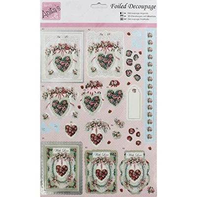 Anita's A4 With Love Foiled Coloured Decoupage Sheet, Accessories Supplies for Craft, Paper Scrapbooking, Card Making, Origami, Ideal Adult Adds A Textured Pattern To Craft Projects
