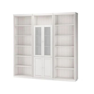 Include 3 bookcases With 2 glass doors and 2 wooden doors Made from FSC-certified wood Available in multiple colours Timeless design