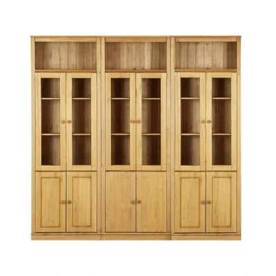Anita Wall Unit 8 with 3 bookcases, 6 wooden doors and glass in stained wax,37x223x222 cm (DxHxW)