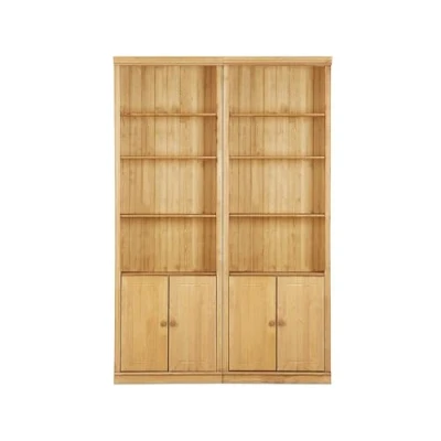 Anita Wall Unit A with 2 bookcases and 4 wooden doors in stained wax,37x223x148 cm (DxHxW)