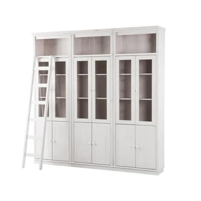 Include 3 bookcases with ladder With 6 glass doors and 6 wooden doors Made from FSC-certified wood Available in multiple colours Timeless design