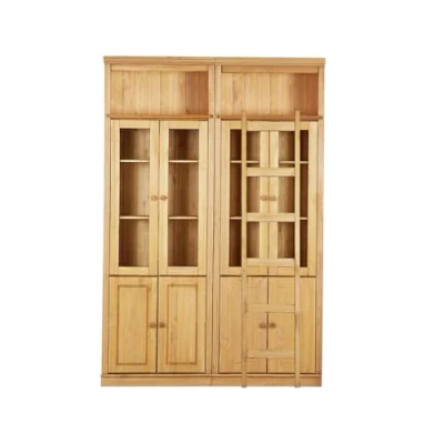 Anita Wall Unit J with 2 bookcases, 4 wooden doors, glass doors and 1 ladder in havana lacquer stained wax,34x223x148 cm (DxHxW)