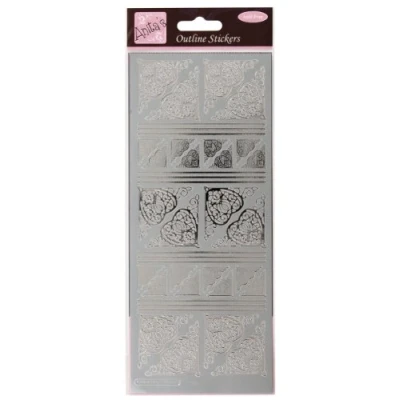 Anitas Outline Stickers, Celtic Heart Corners, Silver, For Scrapbooking, Card Making, Kids Play, Homework, Art, Craft, Embelish, Decorative, Paper, Card, Glass, Metal, Plastic, Foam