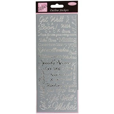 Anitas Outline Stickers, Get Well Soon, Silver, For Scrapbooking, Card Making, Kids Play, Homework, Art, Craft, Embelish, Decorative, Paper, Card, Glass, Metal, Plastic, Foam